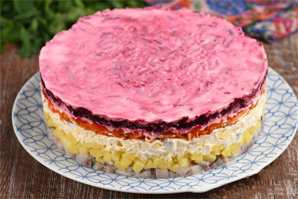Šventinės ir labai originalios salotos Silkė po rubinine kailine